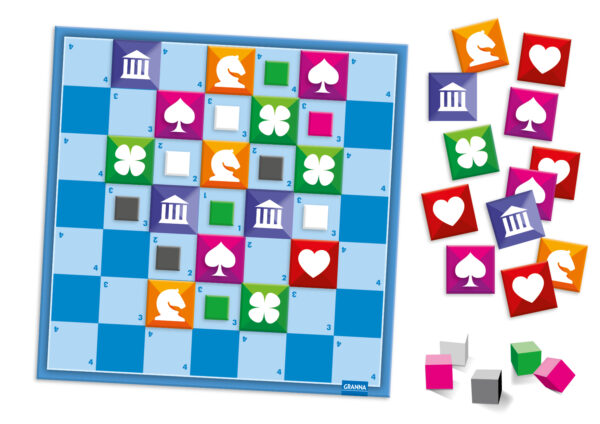 Logická hra, která vyžaduje taktické plánování a reakce na akce protivníků. Během jedné hry provede každý hráč pouze 9 akcí. Proto se vyplatí každý tah pečlivě promyslet, zvláště když vaši protivníci počítají pouze s vaší chybou. Rychlá hratelnost, taktická rozhodnutí a strategický přístup k vašim pohybům – to je Matik! Obsah balení: 20 oboustranných žetonů 1 oboustranná hrací plocha 16 dřevěných kostiček pravidla hry CZ/SK/PL/UKR Jak hrát? Přidejte hrací kostičky nebo žetonů na hrací plochu. Sledujte pohyby ostatních hráčů. Získejte body za hrací kostičky vedle vašich žetonů.