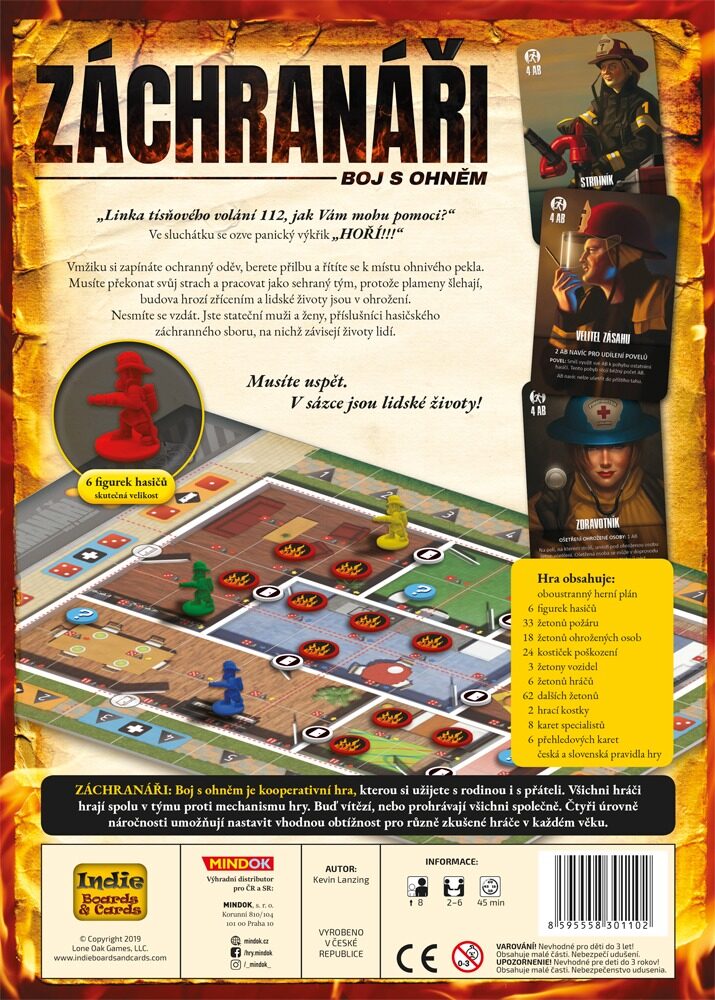 Ve hře Záchranáři se spolu s ostatními hráči postavíte proti neúprosnému živlu. Vaším úkolem je zachránit co nejvíce životů dřív, než se budova zřítí. Každé kolo se situace zhoršuje, požár se šíří a vy musíte chytře plánovat, jak a kam vyrazit. Všichni stojíte na jedné straně – buď zvítězíte společně, nebo shoříte společně.